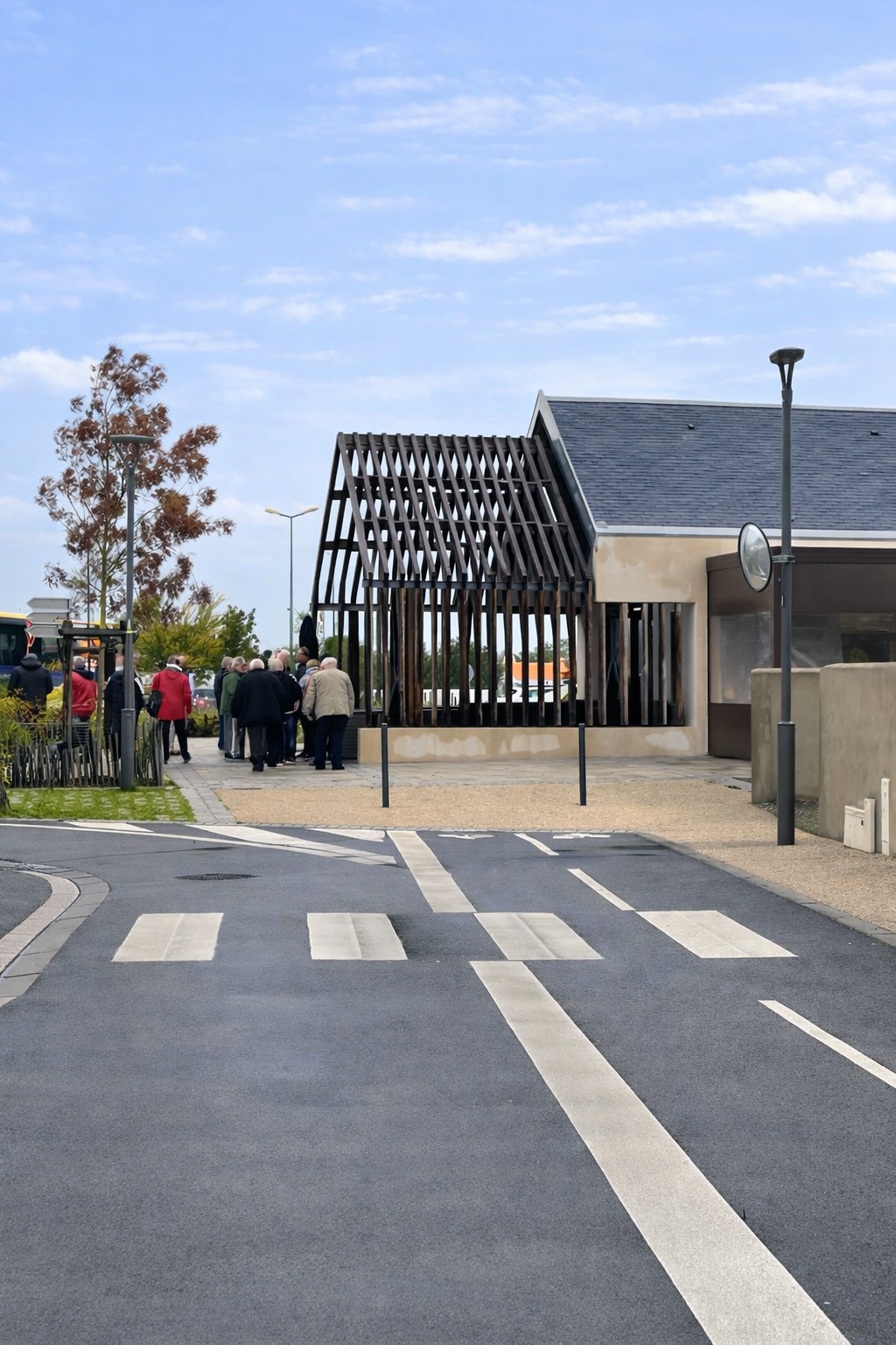 L’écriture architecturale du projet traduit la double fonction du lieu par une juxtaposition de volumes simples. La volumétrie proposée s’inspire des maisons d’habitation caractéristiques du pays vendéen. L’ensemble est surmonté d’une toiture en ardoise permettant à l’édifice de se distinguer dans la trame urbaine existante majoritairement composée d’édifices couverts en tuiles. Cette distinction permet d’affirmer la posture d’équipement public de ce lieu par une architecture singulière.
